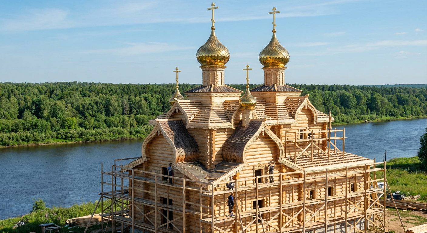 Это кульминация строительства «коробки». Сначала сооружается сложная стропильная система. Затем на земле собирается барабан — цилиндрическая основа купола, часто с оконными проемами. На него устанавливается купол-крыша, форма которого (шлемовидная, луковичная, грушевидная) несет свой смысл. Для подъема тяжелых конструкций используются мощные автокраны. Установка креста на купол — всегда праздник для общины, отмечаемый малым освящением. Каркас купола затем покрывается металлом (чаще нитрид-титаном для золотого эффекта или металлом под окраску), а крест укрепляется.